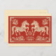 Inspired by the intricate artistry of Chinese paper-cutting, this design features two majestic, mirrored horses adorned with delicate floral patterns and geometric details. Set against a rich, textured red background, the gold-toned illustrations symbolize doubled prosperity and strength for the coming year.