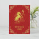 Celebrate the Year of the Horse 2026 with this stunning red and gold Chinese New Year card. Featuring a bold golden horse adorned with traditional Chinese decorative patterns, this design symbolises strength, vitality, and prosperity. The intricate details and rich red background embody good luck and happiness, making it the perfect card to share New Year blessings with family, friends, and loved ones. An elegant keepsake that combines modern style with timeless tradition for the Lunar New Year. Also available as digital invite!