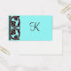A personalizable monogram in a deep chocolate brown scripty letter and a vintage mediaeval art element on a light teal blue background. Use this single letter monogram template for weddings, birthdays, announcements or to add a personal professional touch. Click Customise It to change fonts or background colours.