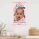 This elegant welcome sign adds a special and personal touch to your christening day celebration. Replace sample photo. All text is using popular typography in black text colours on a soft pink background. Background and text colours can be changed by using the EDIT function.