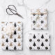 Elegant Christmas Wrapping Paper Sheets featuring three different faux Gold and Black Scandinavian patterns with Christmas Trees, Snowflakes and Gift boxes.