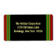 Custom holiday return address labels great for the Christmas season. Red, green, and gold stripes border design adds a classy touch to this professional, classy looking return address or shipping label and the slick black is a nice contrast and enhances the design. Area in the middle is ready for your custom name and address. Great for business as well as and personal labels. Easily change the colour and font style of the text. Try another colour background instead of black if you prefer. Just click on "Customise it" and then "edit" and then click on "background" to change the colour. A clean and stylish holiday label. Available in three different sizes.