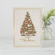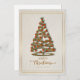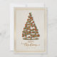 Celebrate the magic of Christmas with this unique greeting card featuring a stylized tree adorned with red ornaments and leafy accents, set against a textured background that highlights the elegant design. The gold lines framing the card and the tree's base add a touch of sophistication. Perfect for sending your holiday wishes in a modern and refined way, ideal for friends, family, or businesses looking for a distinctive festive style. This card will make your holiday greetings stand out and be truly memorable.
