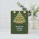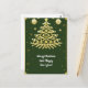 A festive illustration featuring a golden Christmas tree adorned with ornaments, surrounded by decorative snowflakes and festive elements, set against a dark green background, evoking warmth and seasonal joy.
