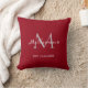 Elegant Christmas Family Monogram Name Dark Red Throw Pillow makes a great holiday keepsake gift idea for a couple. Customizable classy marsala red background on both sides of the pillow. The front is designed with large grey monogram initial and last name in white calligraphy script lettering followed by date established.