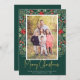 Elegant Christmas Floral Greenery Green Photo Holiday Card