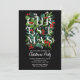 The word CHRISTMAS with greenery and berries accent your party information in chic lettering on these black Christmas holiday party invitations. MATCHING items in our store.
