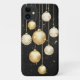 Elegant gold and white Christmas tree ornaments on a black background, perfect way to show your holiday spirit on ANY cell phone case - just choose your model. MATCHING items in our store.