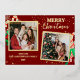 Share your holiday cheer with this vibrant burgundy Christmas design featuring a trendy 2-photo collage and playful candy cane illustrations. The elegant gold sparkle accents and sophisticated typography create a joyful and memorable way to send your love to family and friends.