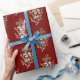 Elegant Christmas Mistletoe Pattern on Red Wrapping Paper