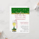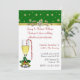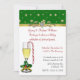 Beautiful holiday party invitation, with graphic artwork of gold stars, on a green background at the top of the invitations, with a border of a gold tone jewel band. A festively decorated wine glass on the bottom has a candy cane hanging on the glass and a sprig of holly and bow, on the stem. Customise the text to suit your needs.