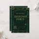 Celebrate the holidays in style with this elegant two-sided Christmas Party Invitation. Featuring a regal emerald green background with intricate gold holly, flourishes, and snowflakes, the front highlights your Christmas party announcement while the matching decorative back adds a polished finish. Perfect for festive gatherings, corporate events, or family celebrations, this invitation delivers a refined and luxurious seasonal look.