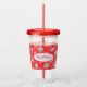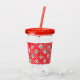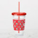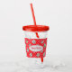 Show your holiday spirit with this elegant Christmas design drinking glass. It has a pattern of elegant ornaments, ice skates, red ribbons, and polka dots on a red background.