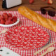 Elegant Christmas Pattern on Red Paper Plate