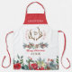 Elegant Christmas red floral family name monogram Apron
