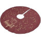 Decorate for the Holidays with this bright, elegant, Red Tree Skirt, trimmed in Gold Coloured stars. Text: Merry and Bright in Gold coloured trim.