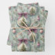 This vintage Victorian-style bauble and bow wrapping paper captures the charm of an old-world Christmas, with soft pastel ornaments with snow covered Christmas trees inside the baubles with a delicate blush pink ribbon details, and a romantic antique background.