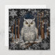 Immerse yourself in the enchanting allure of this elegant bohemian owl artwork, where nature's elegance meets timeless artistry, set against a silvery snowflake background. Each element of the artwork, from the midnight sky to the fine veining on the owl wings, is rendered with meticulous care, evoking a sense of nostalgia and wonder.