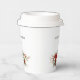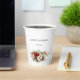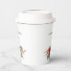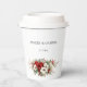 This romantic and classic Christmas or winter-themed paper cup design features a cluster of vibrant red and white winter flowers, pine, holly berries and rustic twigs and editable text fields.