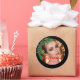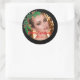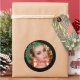 Elegant Christmas Wreath Photo Black Gold Classic Round Sticker