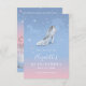 Searching for light blue and pink Cinderella themed birthday party ideas? Just create your own unique, elegant save the date cards with this simple DIY template that can be personalised with ease. The unique, original fairy tale artwork by Raphaela Wilson showcases a luxurious glass Cinderella shoe / slipper (with optional crystal butterfly), horse drawn magical pumpkin carriage, clock about to strike midnight, faux sparkle glitter dust, and subtle heart confetti. These beautiful template save the date invitations are blush pink and light baby blue, but the whimsical design may be edited to change colours. The back side text reads: "Get ready to dance the night away 'til the clock strikes midnight," and by rewording the text, these elegant save the dates can set the tone for fairytale weddings, a Cinderella sweet 16 birthday party, princess baby shower for a girl, once upon a time bridal shower, and other magical moments. Care to send guests budget postcards or custom save the date magnets instead? It is simple to transfer the blue and pink princess design to a different stationery template. The script calligraphy and other modern fonts may also be altered to a typography that best suits your fancy. Enjoy! Category: Cinderella wedding save the date invitations with hearts; elegant save our date wedding stationery; and cute princess quinceañera save the date mailing accessories. Cinderella mis quince anos theme colours: baby blue pastel, dusty blue, rose gold pink, blush, light grey, dark grey, faux metallic silver and white.