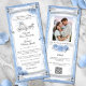 If you're pressed for time or wish to skip rolling your own DIY scroll invitations with ribbons and dowels, this elegant wedding scroll card is a beautiful, simple alternative! Showcasing original watercolor and digital art by Raphaela Wilson, the design captures the essence of a Cinderella fairytale with whimsical soft light blue hues and sparkling faux silver accents—perfect for a romantic once upon a time wedding or any enchanting celebration. Feel free to creatively reword them to suit a storybook quinceanera, sweet 16 birthday party, princess baby shower, bridal shower, etc. The layout mimics the look of white watercolor parchment paper, adorned with delicate blue roses, a horse carriage clock about to strike midnight, glittering butterfly confetti, a royal crown, and whimsical silver flourishes. Its tall, scroll inspired format offers ample space for your wedding details, thoughtfully arranged in a mix of graceful calligraphy script and modern fonts. The back can be customised with a romantic engagement photo, and a QR code linking to your wedding website for reception details and to rsvp online. These editable and downloadable scroll invitations are a charming way to set the tone for your magical day. Enjoy! Category: unique Cinderella scroll invitations for weddings; fairy tale quince DIY scroll invitation card ideas; and instant download light blue blue scroll wedding invitations. Light blue wedding colour theme: dusty blue, baby blue pastel, powder blue, dark grey, light grey, silver, black and white.