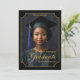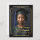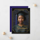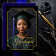 Celebrate a milestone moment with this elegant "Class of 2026" portrait-style graduation announcement. Featuring a dramatic black background, refined gold accents, and an ornate frame design, this vertical layout showcases the graduate’s photo in a timeless, formal presentation. Personalized with the graduate’s name, school, and class year, this design creates a polished keepsake perfect for honoring high school or college achievements. Ideal for sharing with friends and family, this sophisticated graduation announcement highlights pride, accomplishment, and the beginning of a new chapter. Back Background is dark blue.