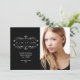This design features the year of your graduation inside an ornate white swirl pattern on a coloured background. Your photo is displayed on the left. Graduation party details can easily be added to the back of the card.