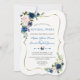 Elegant Classic Blue Pink Flowers Rehearsal Dinner Invitation