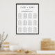 12 TABLE - This wedding seating chart features an elegant black border over a classic white background with vintage inspired typography. All of the text is customisable. Click the "personalise" button and use the design tool to enter guests names. The default size is 24 x 32 inches but 18 x 24 also works great without having to adjust the frame.