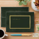 Modern stylish formal wedding invitation envelope in a vintage style antique distressed looking dark emerald green with gold frame and typography. Personalised with your custom sender return address on the backside.