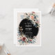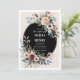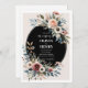 Elegant Classic Floral Rustic Wedding Invitation 4. This beautifully designed wedding invitation features a classic black oval centre with elegant floral arrangements in soft blush, cream, and dusty blue hues. Perfect for rustic or botanical-themed weddings, the design radiates charm and sophistication. Personalise the text for your special day and leave a lasting impression on your guests.