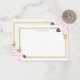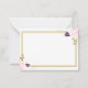 A modern calligraphy, sophisticated, simple, elegant and chic personalised wedding couple's note card that is a modern take on a traditional wedding frame: a gold frame (not real foil!) with floral corners - two roses, a pink one and a purple one with gold eucalyptus and other foliage (not real foil, this is a digital effect). Perfect for a wedding featuring gold accents, a black and white wedding or a wedding stationery suite with frame designs. Also a lovely personalised stationery choice for an established couple, for sending thank you notes, gifts etc.