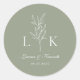 Elegant Classic Leaf Monogram Wedding Sage Green Round Sticker