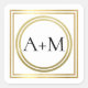 Faux gold square and circle frames, with couple initial letters in a thin and elegant font-style, for a classy wedding favours and packaging