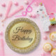 elegant classic script happy birthday,gold glitter paper plate