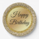 elegant classic script happy birthday, gold glitter Paper Plates