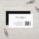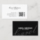 This timeless business card design features a clean, white background with a touch of sophistication. The elegant script font adds a personal touch, while the inclusion of a QR code and social media icons ensures easy connection. The back features a minimalist black design with a striking, handwritten name for a memorable visual.