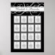 Elegant black and white wedding or annivesary dinner party seating chart. Easily customise the layout with the names of your guests. You can put beween 6 and 9 at each table, meaning that this chart can help you to seat between 96 and 144 people. The black background colour is customisable. You can make this design perfectly match the colour scheme of your event. Why not frame one as a souvenir? We've picked a standard size for reasonabily priced framing.