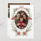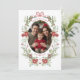 The wreath frame adds a touch of vintage elegance to the card. It features an intricate green and red winter botanical watercolor design that is both timeless and unique, making your holiday card stand out from the rest. On the reverse side you'll find ample space to add your personal Christmas wishes to friends and family.