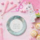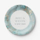 ELEGANT CLASSY AQUA DUSKY BLUE GOLD AGATE WEDDING PAPER PLATE