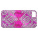 Elegant Classy hot pink silver Damask Floral Case-Mate iPhone Case