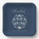 Elegant Classy Navy Blue Happy Hanukkah Floral Paper Plate