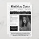Celebrate her milestone with timeless elegance using this newspaper-style quinceañera invitation. The layout features customisable text on the left side for date, location, and RSVP, and a photo section on the right for a personal touch. Simple to personalise and perfect for a sophisticated celebration.