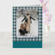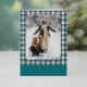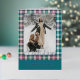 This holiday greeting card stands out with its elegant and unique design. It features a timeless "Happy Holidays" greeting printed in real gold foil, customisable to your preference, on a teal blue, white, and maroon red plaid pattern design. The front offers space for your family name, photo, and custom seasonal greeting, while the back is perfect for adding a personalised seasonal message or poem. It's a stylish way to send your holiday wishes.