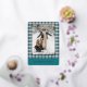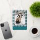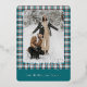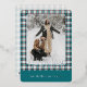 This holiday card stands out with its elegant and unique design. It features a timeless "Happy Holidays" greeting printed in real gold foil, customisable to your preference, on a teal blue, white, and maroon red plaid pattern design. The front offers space for your family name, photo, and custom seasonal greeting, while the back is perfect for adding a personalised seasonal message or poem. It's a stylish way to send your holiday wishes.