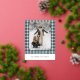 This holiday greeting postcard stands out with its elegant and unique design. It features a timeless "Happy Holidays" greeting printed in real gold foil, customisable to your preference, on a teal blue, white, and maroon red plaid pattern design. The front offers space for your family name, photo, and custom seasonal greeting, while the back is perfect for adding a personalised seasonal message or poem. It's a stylish way to send your holiday wishes.