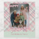 This holiday wine label stands out with its elegant and unique design. It features a timeless "Happy Holidays" greeting, customisable to your preference, on a dark red, pink, green, and white plaid pattern design. This label offers space for your family name, photo, and custom seasonal greeting. It's a stylish way to gift your holiday wishes.
