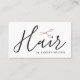 Elegant customisable business card template with FAUX rose gold scissors icon /white background and handwriting text. Modern clean design, perfect for hair stylist, hairdresser.