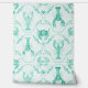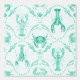 A coastal design with watercolor lobsters, crabs, and shells and coral in mint green tones. Perfect for preppy southern beach house style.